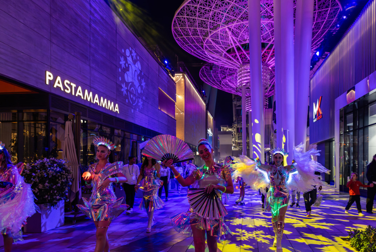 As part of Bluewaters’ Find Your Holiday Glow festive showcase this year, the destination will transform into a vibrant winter spectacle, featuring futuristic decorations, glowing light installations, and interactive activities for all ages. One highlight of this spot is the glow-in-the-dark outdoor cinema, which invites visitors to enjoy classic films, such as Home Alone, under the stars in a futuristic, light-filled setting.