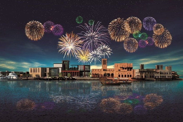 Al Seef’s charming waterfront setting, with its old-style architecture and tranquil creek views, makes it a cozy spot for fireworks