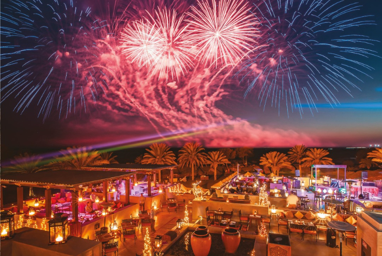 Nestled in the desert, Bab Al Shams offers a magical New Year’s Eve with its iconic fireworks display.
