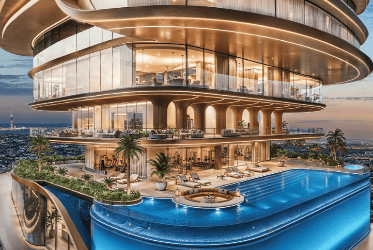 Promoted as affordable luxury for big dreamers, the tower is said to provide over one million square feet of space, with prices starting at AED 1.7 million. And that’s not all! Potential residents or investors can expect more than 40 amenities such as a helipad, and a sky pool. This tower aims to attract dynamic enterprises that seek prestige and visibility.