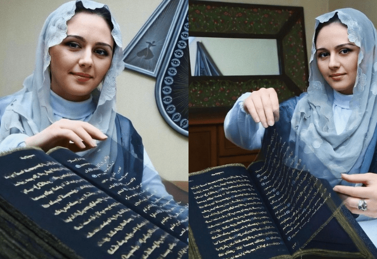 Tünzale Memmedzade, a 33-year-old artist spent three years creating a masterpiece. She wrote the Quran in gold on black silk! The Azerbaijani painter used 11.4″ x 13″ sheets of delicate silk, in total which was about 164 feet of black silk. When talking about the ink, she used a little more than three pints of gold and silver ink to transcribe the beautiful text. Here are some of the pictures: