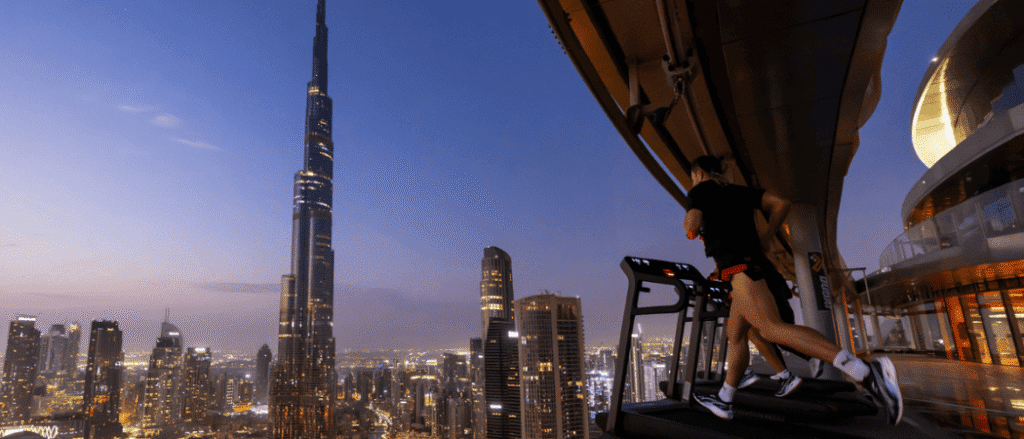 At 4:00 AM, as the residents of Dubai slept, a group of select athletes and influencers gathered for an unforgettable experience. They stepped onto treadmills suspended high above the skyline, facing the iconic Burj Khalifa. As the sun came up, runners hit their stride high above the skyline, feeling that unbeatable “Runner’s High” in one of the most epic spots imaginable.