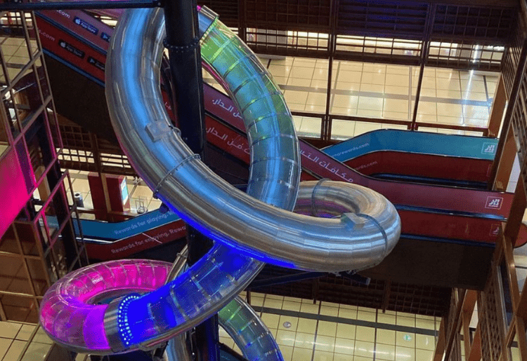 Located at WTC Mall, Abu Dhabi is the emirates’ longest slide. Here there are 2 long indoor slides, one is transparent and the other one is closed and has lights inside. For one round AED 15 and two rounds AED 25. Visit: https://www.wtcad.ae/en/home for more information.