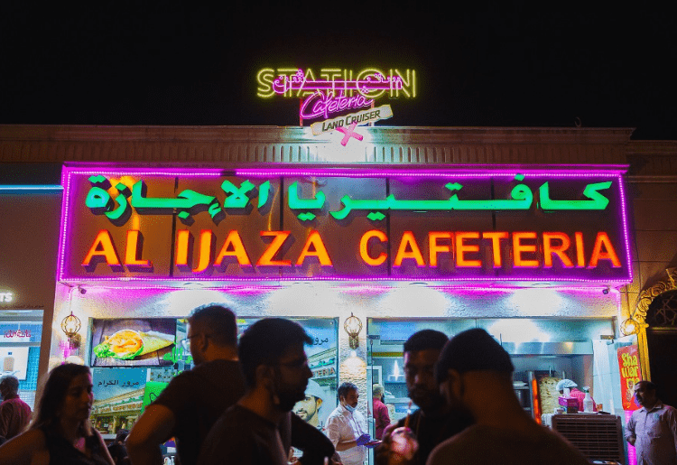 Long before fast-food franchises and drive-through restaurants were commonplace in the UAE, people would visit smaller cafeterias with cooks providing quick snacks, juices, and Karak chai. Drivers would order from their vehicles and enjoy the reasonable cost, high-quality cuisine. Despite the availability of additional alternatives, many locals and foreigners alike continue to participate in this tradition, with Al Ijaza Cafeteria remaining one of the most popular dining locations for this sort of experience for over 20 years.